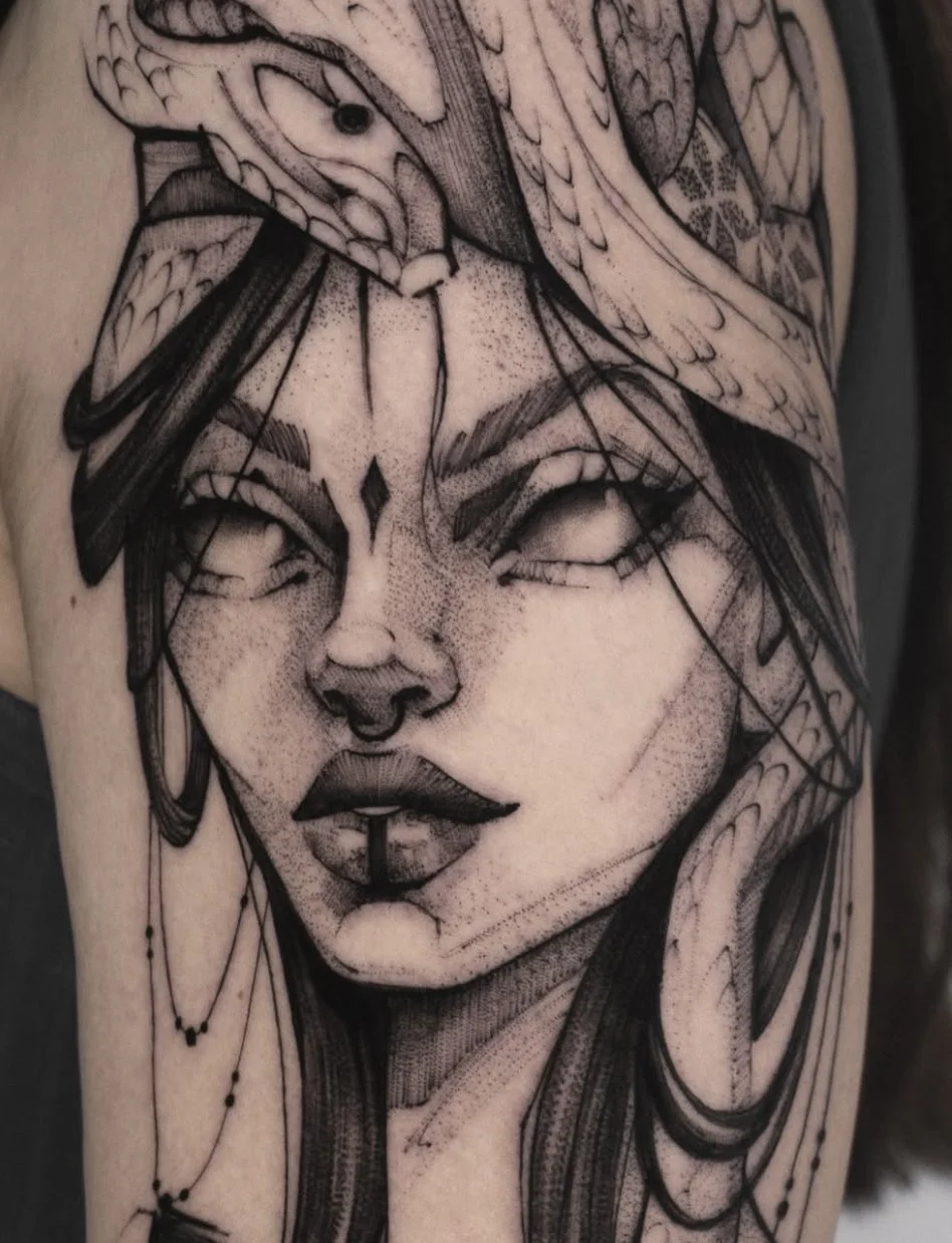So leicht und unfertig Sketch Style Tattoos aussehen, so viel handwerkliches Können, Talent und auch Erfahrung benötigt die Umsetzung dieser so facettenreichen Motive. Die feine Linienführung, der Kontrast zwischen hell und dunkel, die Verbindung von geometrischen Strukturen und gekritzelten Elementen und auch die Illusion von Bewegung erfordern vom Tätowierer eine entsprechende Spezialisierung und eine ganz besondere Hingabe. Auch die Dimension ist eine Herausforderung, denn Sketch Style Tattoos sind oft besonders großflächig.